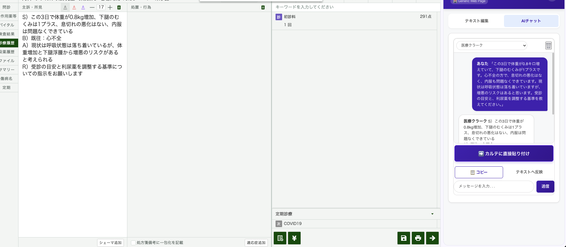 - SOAP作成オートメーション:メモ書きからカルテ記録を一発作成。AIが診療内容を整形します